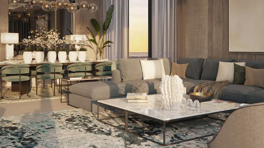 The "Blue Bay Walk" comprises 6 residential and commercial towers that offer a range of luxury studios, 1 & 2-bedroom apartments along with the serviced environment. The development is configured in a creative manner, as two of each of the six towers are joined on a platform with parking spaces, serviced areas. The two towers above the podium is a serviced area with a swimming pool, kids play area, spa, and various relaxation spots with the highest levels of comfort and quality.
